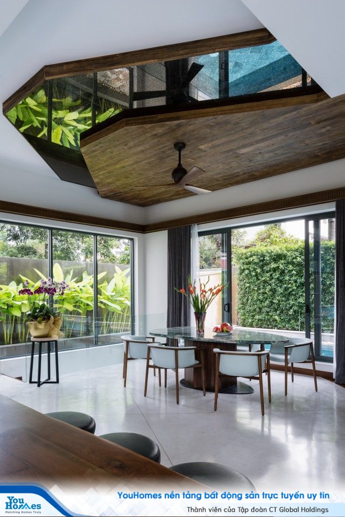Căn nhà có thiết kế bên ngoài vô cùng độc đáo theo phong cách đóng – mở. Nhưng khi bước vào bên trong lại mở ra góc sống chan hòa với thiên nhiên. Tất cả tạo thành một chuỗi những trải nghiệm thú vị.