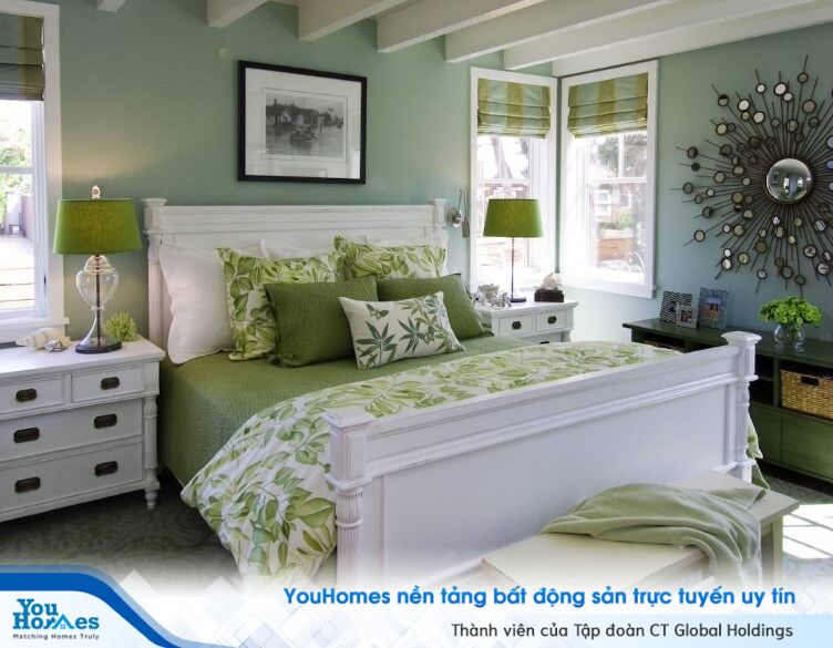 Ngoài ra, bạn có thể sử dụng các loại sơn màu như màu xanh lá cây, xanh nước biển, xanh ngọc bích… để mang đến sự thư giãn, thoải mái, gần gũi với thiên nhiên cho không gian nhà bạn. Màu sơn nhà có thể là những màu xanh đậm, sắc nét nhưng đôi khi lại là những màu sắc dịu nhẹ và tươi sáng như gam màu xanh nhạt, xanh pastel...