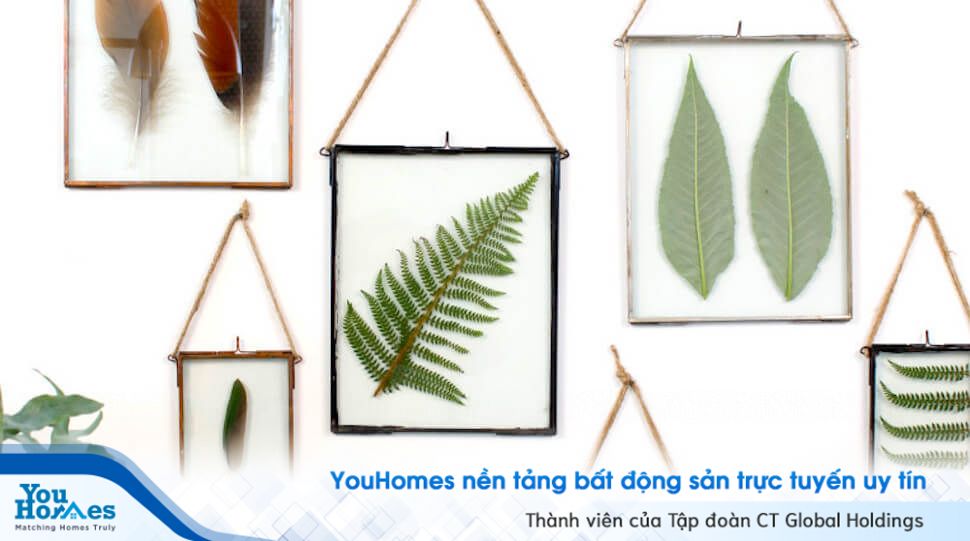Thu thập một số lá từ khu vườn của bạn hoặc một vườn ươm và đóng khung chúng làm đồ trang trí trên tường, tạo cho nên những khung hình độc đáo làm điểm nhấn cho bức tường.