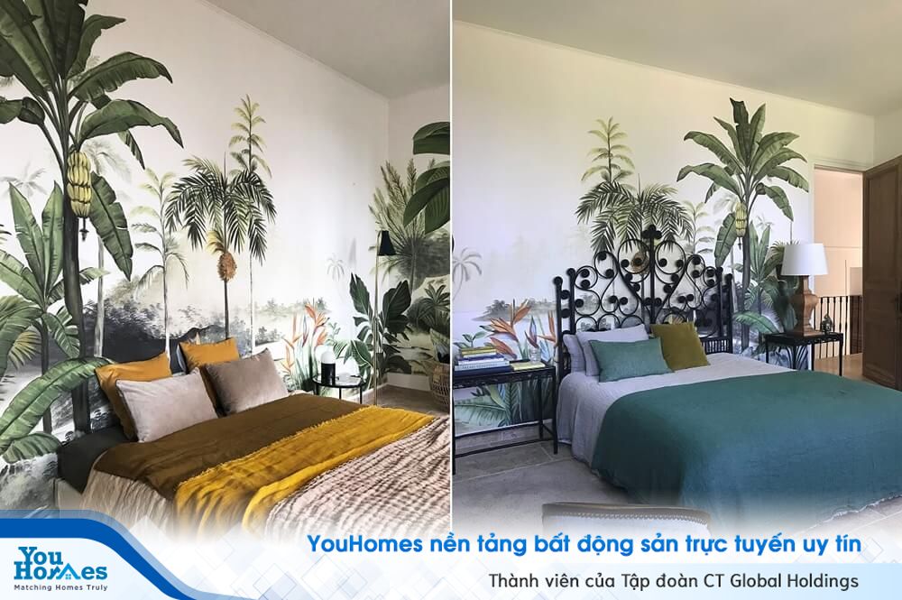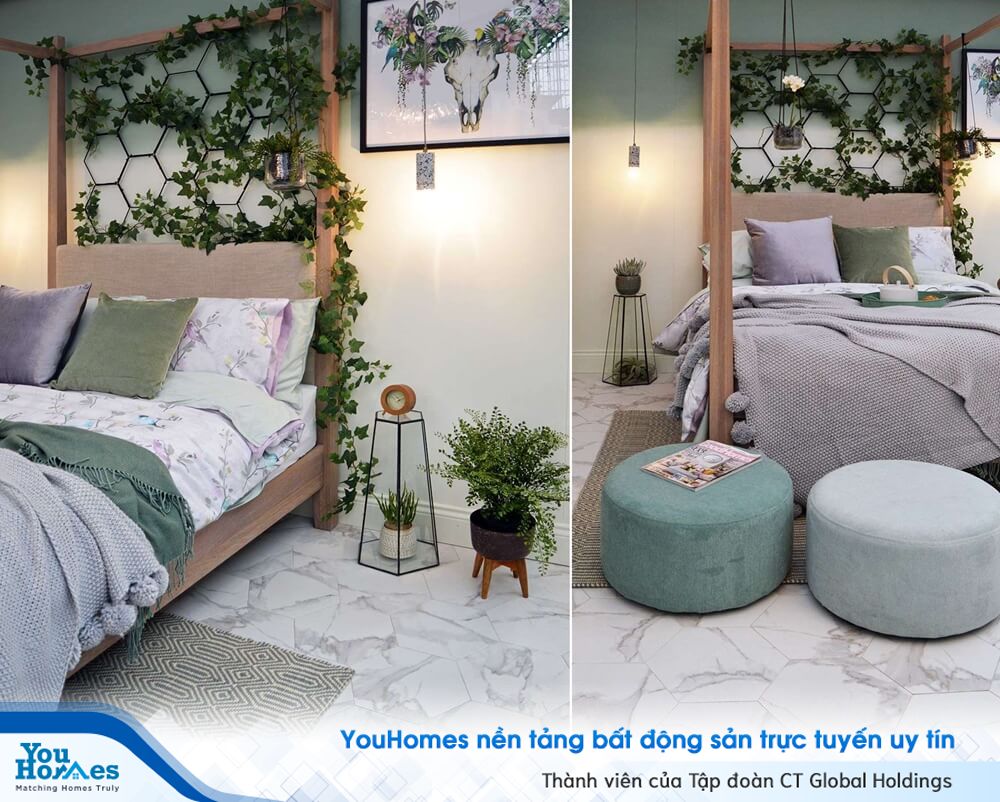 Bên cạnh việc trồng cây xanh trang trí, bạn có thể sử dụng gạch lát sàn, tường hay những đồ nội thất, trang trí với các bản in thực vật để có thể mang không gian thiên nhiên xanh mát vào căn nhà của bạn.