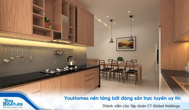 Căn bếp với nội thất gỗ hiện đại, tiện nghi mang nguồn cảm hứng cho gia chủ để có những bữa cơm ngon cho gia đình.
