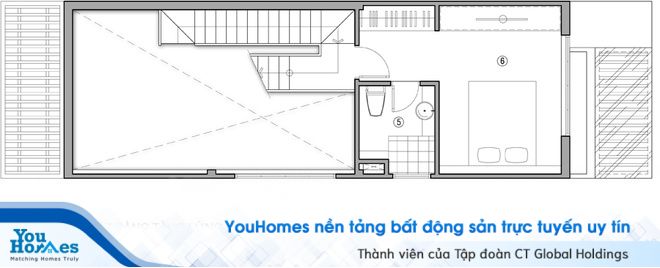Tầng lửng được thiết kế phòng ngủ cho bố mẹ, có WC liền kề