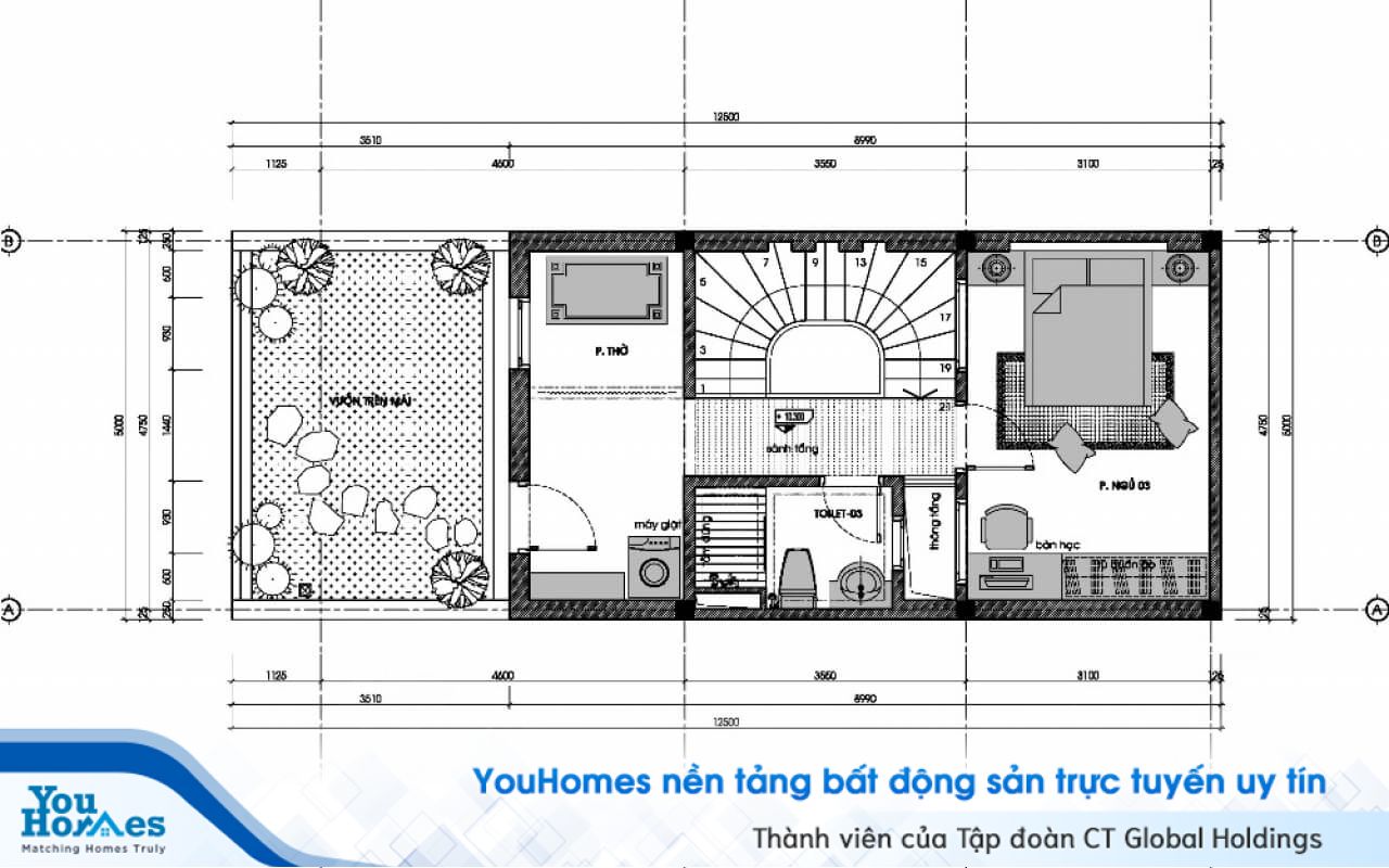3. Nhà ống 2 tầng 1 tum có gác lửng