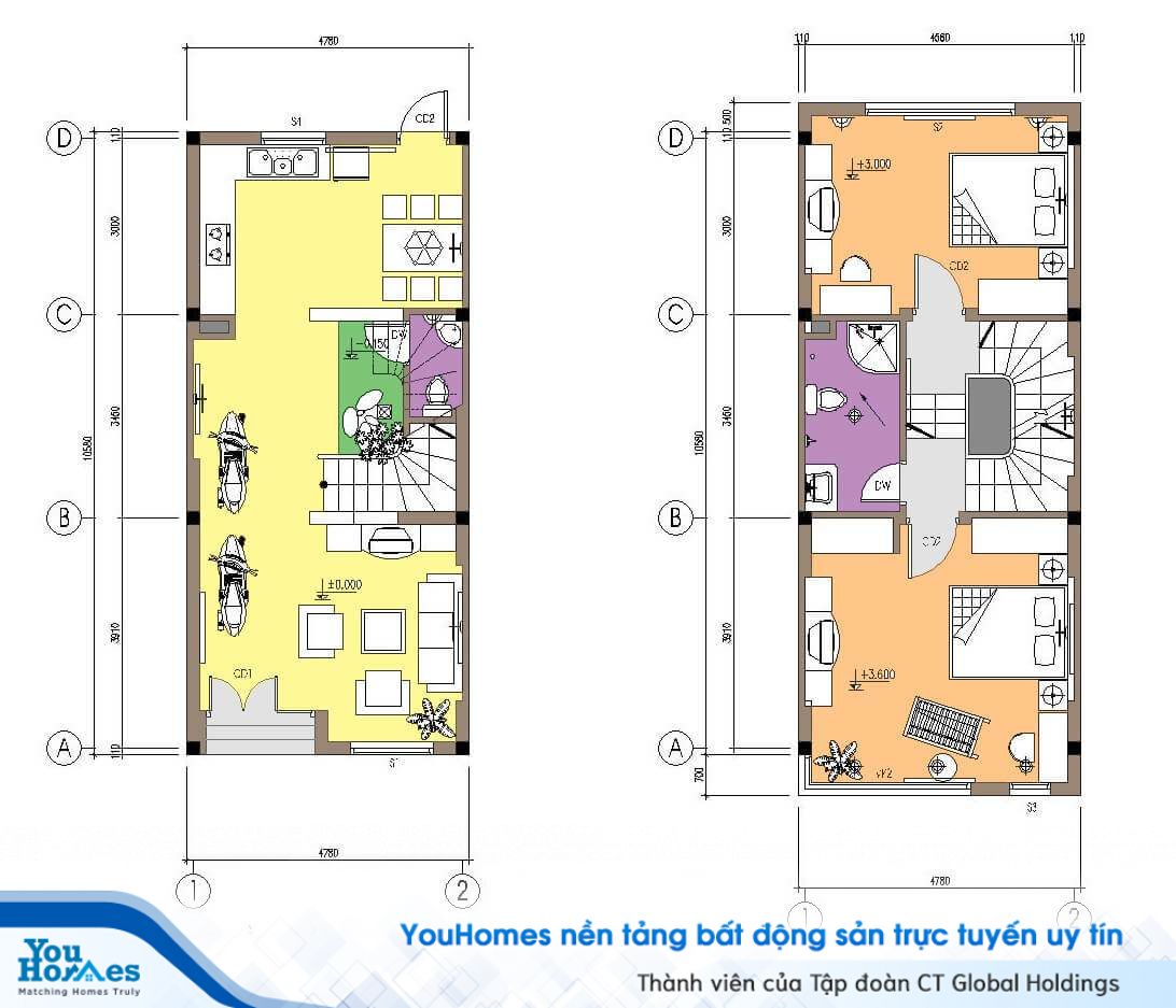 Bản thiết kế hà ống 2 tầng 1 tum được nhiều người ưa thích lựa chọn để thiết kế ngôi nhà của mình.