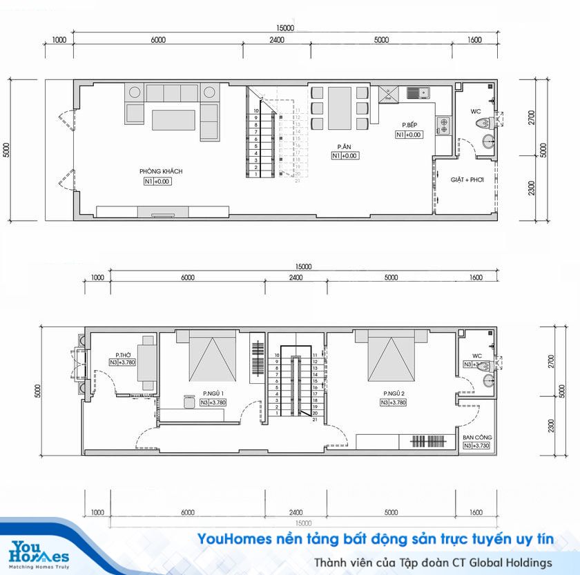 Nếu bạn đang muốn xây cho mình một ngôi nhà ống hiện đại thì đừng bỏ qua bài viết này của YouHomes nhé! Dưới đây là mẫu nhà 2 tầng 5x15m2 với 2 phòng ngủ thích hợp cho những gia đình 4-5 thành viên có chi phí hợp lý đảm bảo các thành viên sinh hoạt thoải mái.