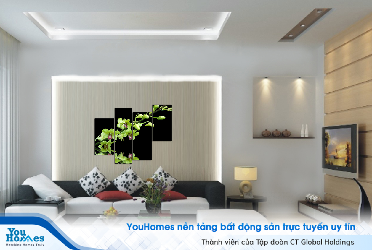 Rất đơn giản, cách trang trí này bạn chỉ cần kết hợp 2 gam màu trắng và vàng, ngoài ra có thể chọn màu sáng khác (như xanh nhạt, be, cam nhạt …) phù hợp với phong thủy, mệnh tuổi của chủ nhà. Để tránh cảm giác đơn điệu hoặc không có điểm nhấn khác biệt thì có thể chọn những chiếc gối ôm gam màu tối để tạo nên sự tương phản về màu sắc. Tô điểm thêm sắc xanh bằng những chậu cây tiểu cảnh đẹp, treo tường hoặc để trên đôn trang trí. Tông màu đồng nhất trong căn phòng khách cũng được ưu tiên để không bị rối mắt.
