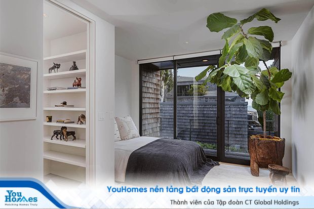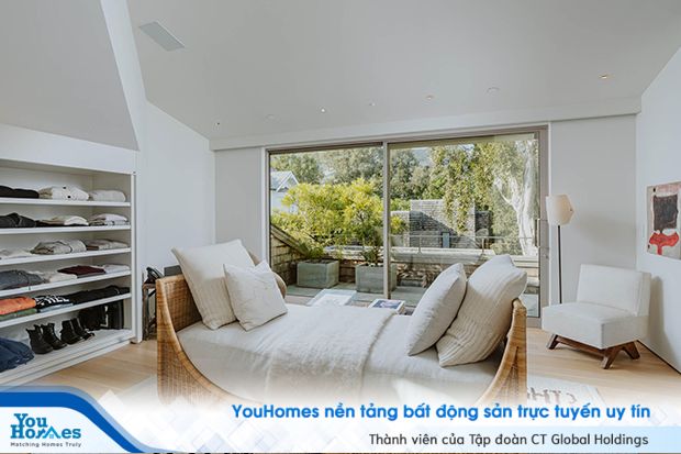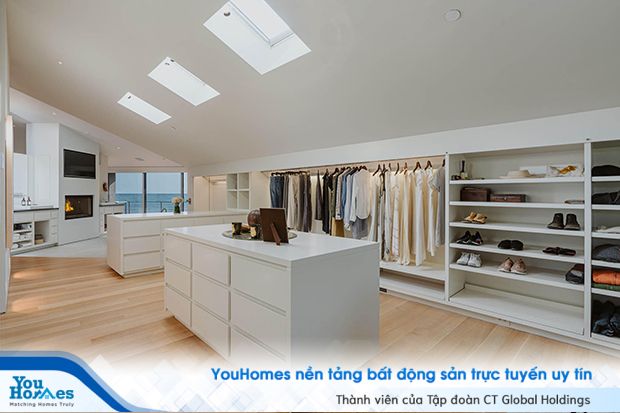 Cửa sổ trần cung cấp nhiều ánh sáng tự nhiên trong tủ quần áo không cửa này.