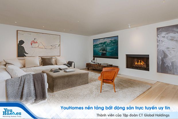 Tác phẩm nghệ thuật chiết trung được trưng bày một cách nghệ thuật trang trí ở một bên của phòng tập thể dục. Chúng được xếp ngăn nắp ở một góc của căn phòng tạo ra những điểm nhấn thú vị. Có thể thấy, mọi căn phòng trong ngôi biệt thự này đều được trang trí cẩn thận.