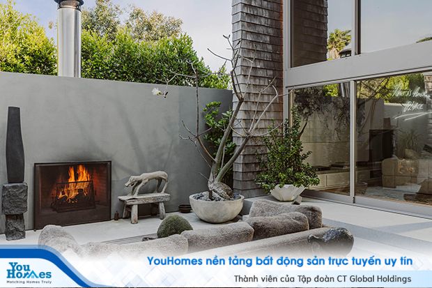 Một ban công khác cũng được trang bị lò sưởi với những đường nét kiến trúc độc đáo tạo những điểm nhấn riêng biệt, lạ mắt.