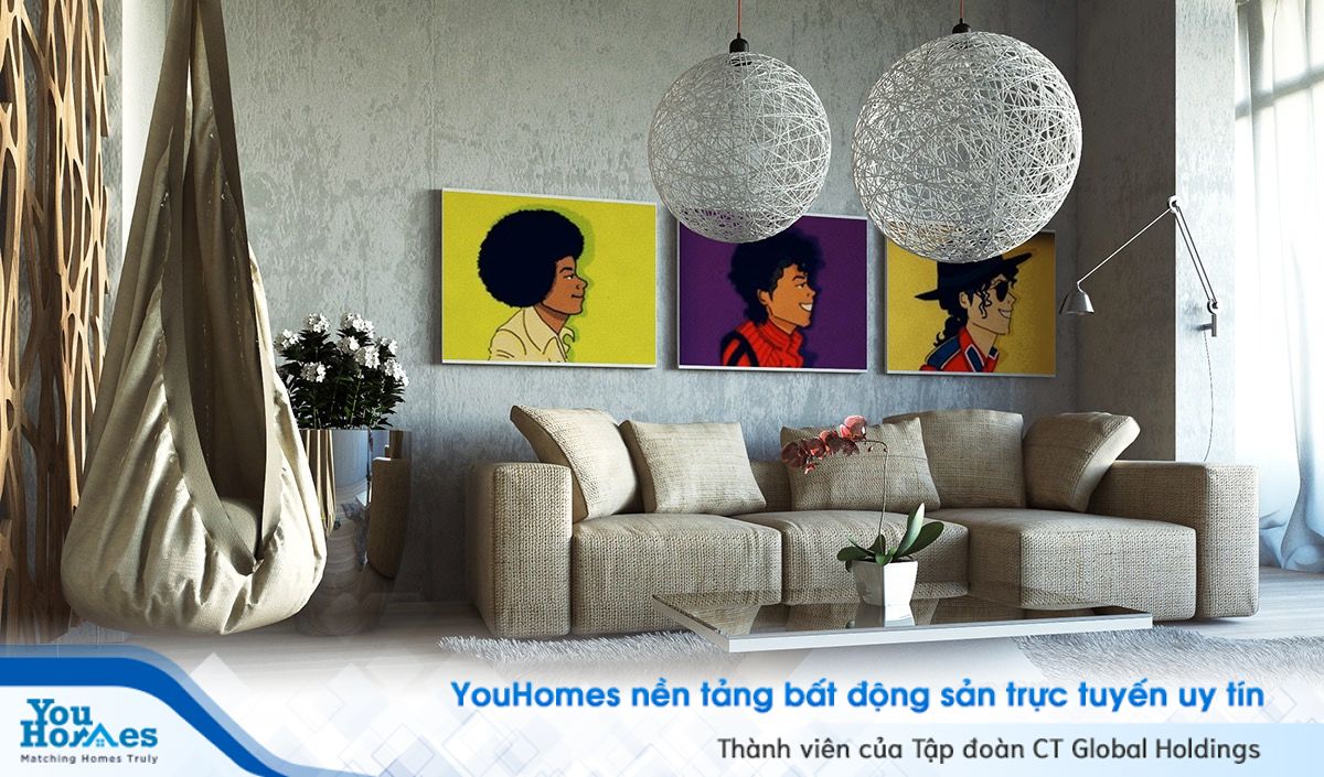 Nếu bạn cảm thấy bức tường bê tông có vẻ trống trải thì có thể chọn thêm tranh để trang trí.