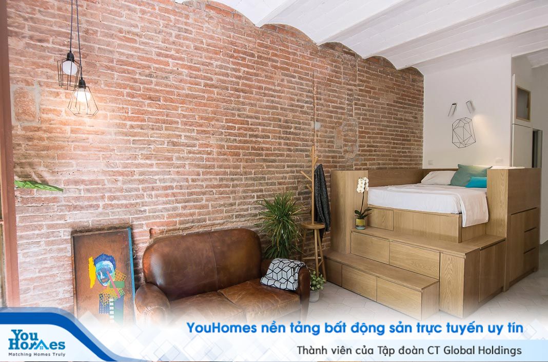 Phòng khách, phòng ăn và phòng ngủ được tích hợp trong cùng một không gian nhưng lại trở nên cực kỳ hợp lý không hề gò bó nhờ ứng dụng nội thất thông minh.