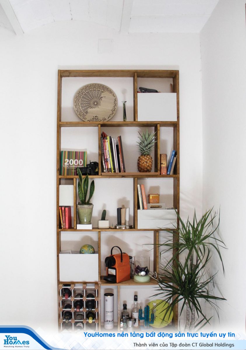 Giá để đồ được tích hợp đẻ nhiều đồ dùng khác nhau. Các chai rượu cũng được thiết kế một chỗ để sắp xếp một cách gọn gàng và khoa học nhất.