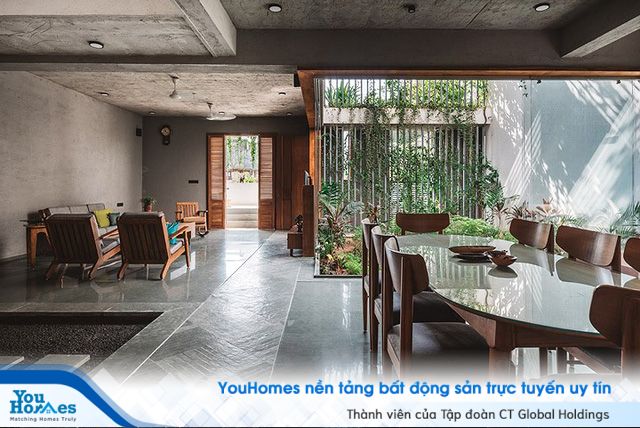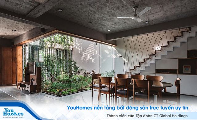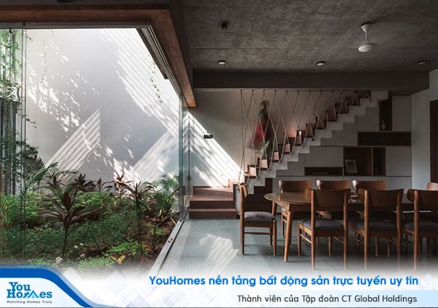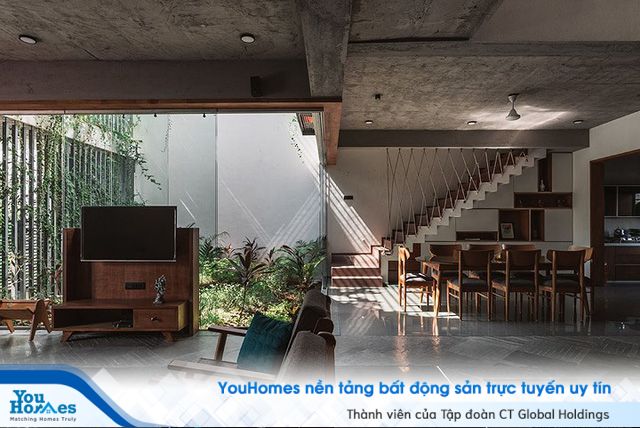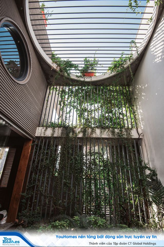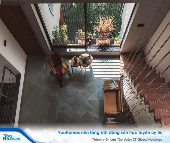 Nhờ có cây xanh ở khu vực giếng trời mà không khí trong nhà luôn trong lành và dễ chịu.
