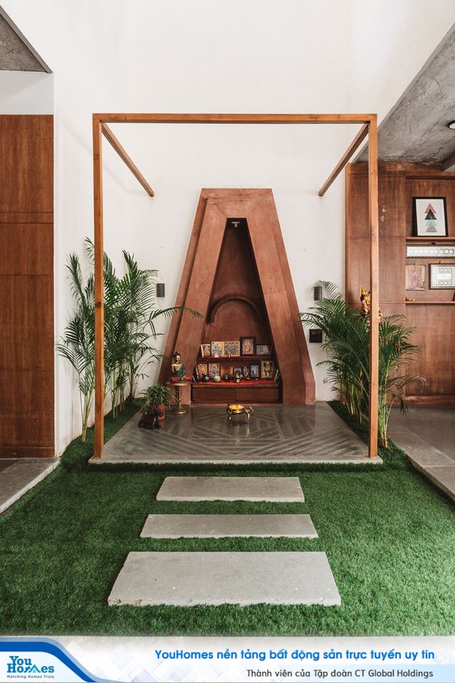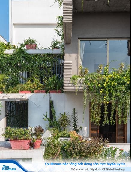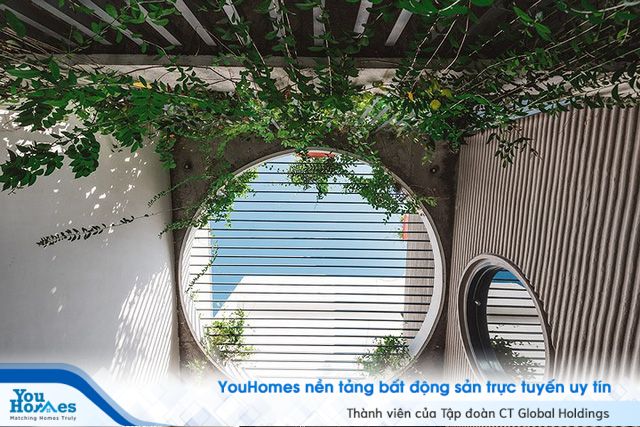 Xung quanh ngôi nhà được trồng rất nhiều cây xanh mang bầu không khí trong lành và tươi mát cho khắp không gian.
