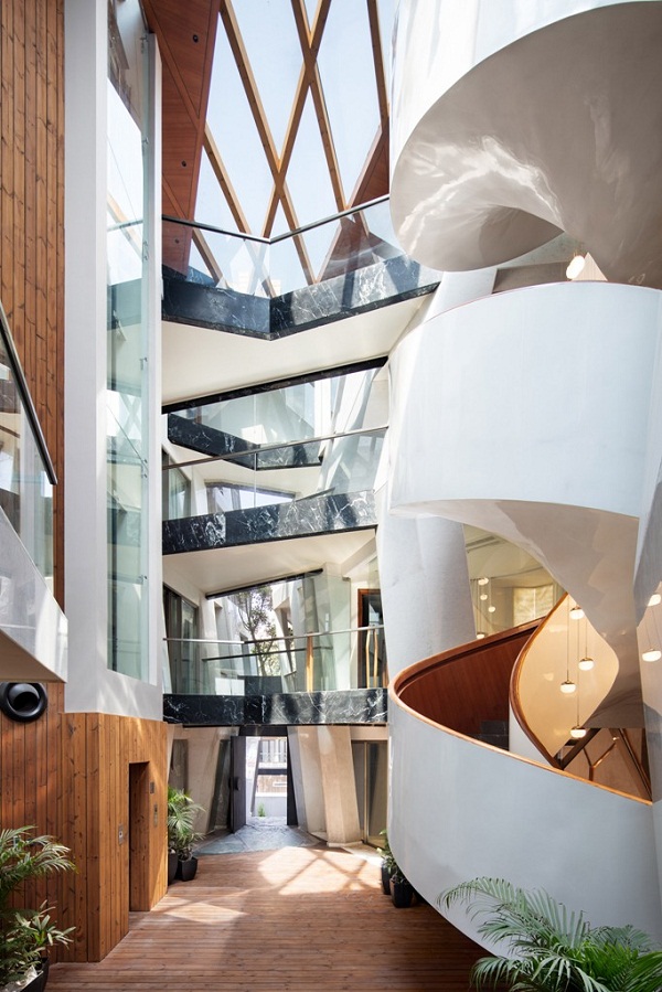 Bên trong ngôi nhà chẻ này ở phía bên phải có một cầu thang xoắn ốc làm không gian trở nên ấn tượng hơn rất nhiều.
