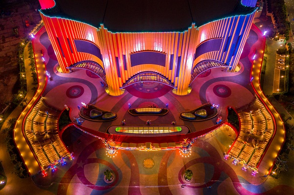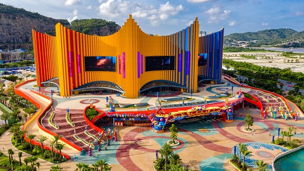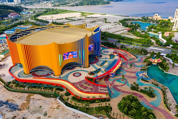 Tòa nhà mới trông độc đáo với hình dạng không thể nhầm lẫn vào đâu được của một rạp xiếc truyền thống, tạo ra một địa điểm vui nhộn, sôi động trên đảo Hengqin.