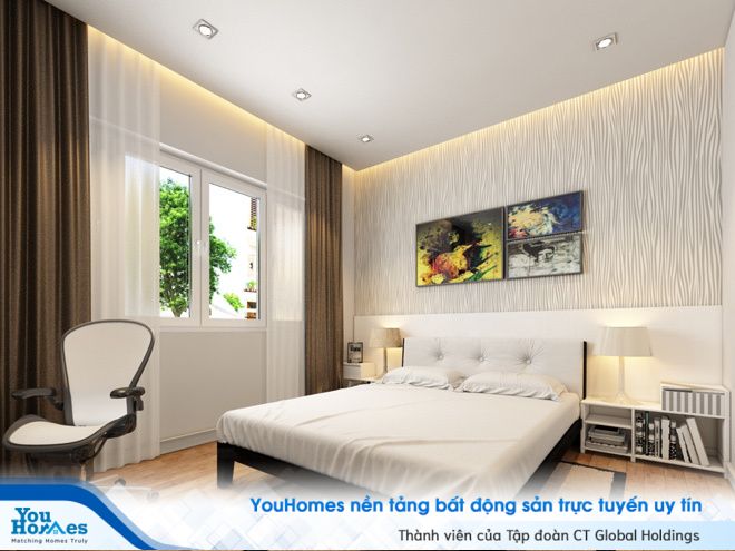 Các phòng ngủ đều được thiết kế đơn giản nhưng không kém phần sang trọng và luôn tận dụng được nguồn sáng tự nhiên qua các ô của sổ. Các bức tranh nghệ thuật được lựa chọn khéo léo tạo được điểm nhất cho căn phòng.