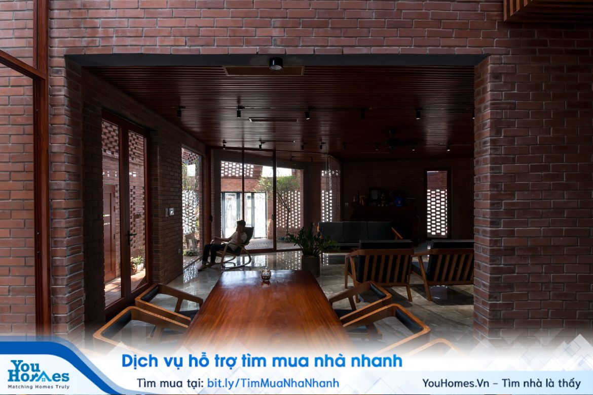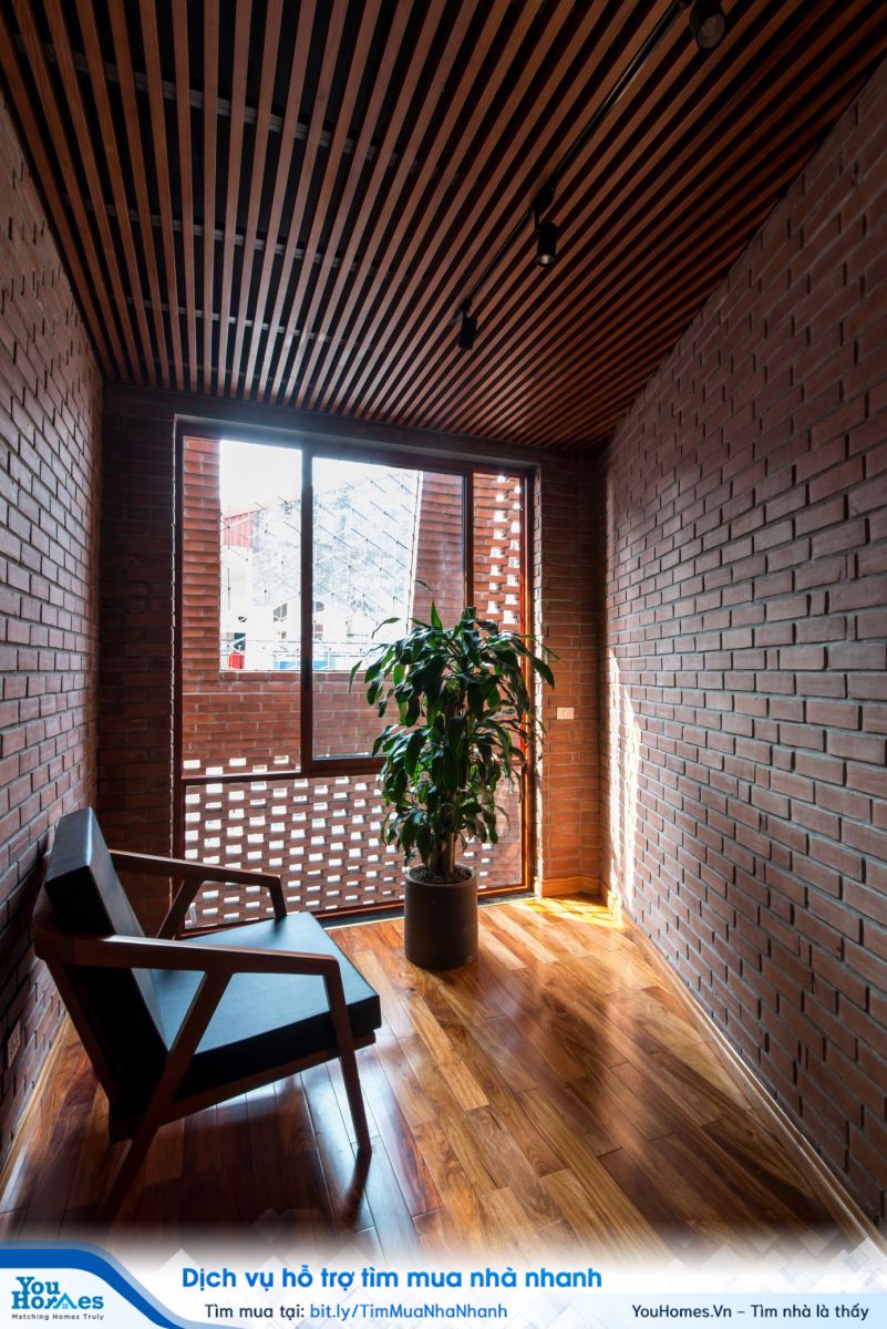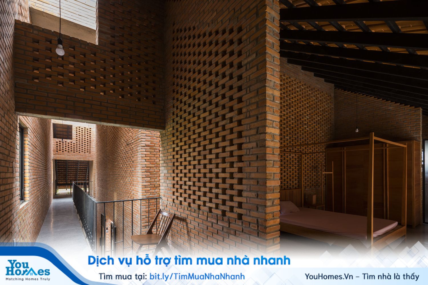 “Hang gạch” nhắc nhở mọi người về những mảnh cảm xúc vừa lạ vừa quen bằng cách đưa tới những hình ảnh của các góc của sân, mở rộng bầu trời, dải vườn và các phần của con hẻm. Điều này mang đến một trải nghiệm thú vị trong không gian mở rộng lớn hài hòa và thoải mái.