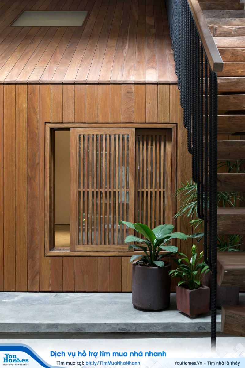 Kiến trúc sư đã khéo léo ứng dụng gỗ vào những chi tiết đắt giá trong nhà để khơi gợi cảm nhận người xem về nét kiến trúc truyền thống xưa, vừa gợi nét hiện đại.