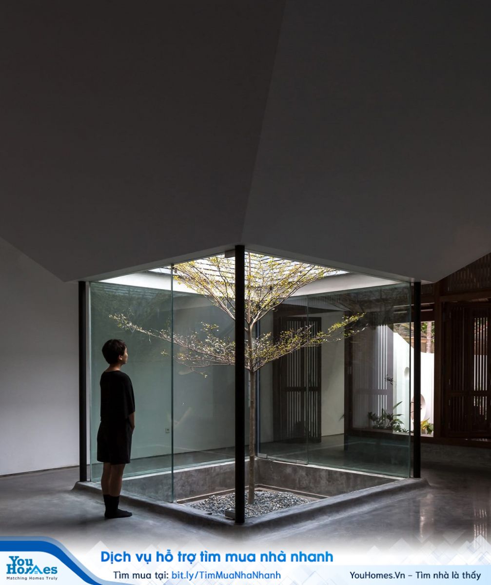 Khối kính giúp phân chia khu vực, tạo hành lang nhỏ để thiết lập trật tự cho không gian mở nơi đây. Chúng ta như đang bước vào một buổi triển lãm nghệ thuật trong nhà - nơi nhìn ngắm thiên nhiên của riêng mình.