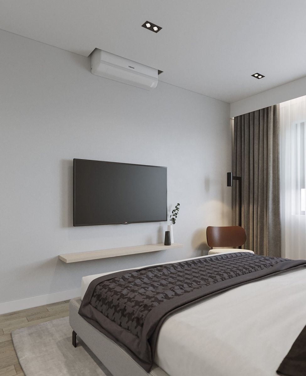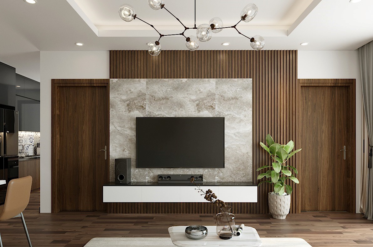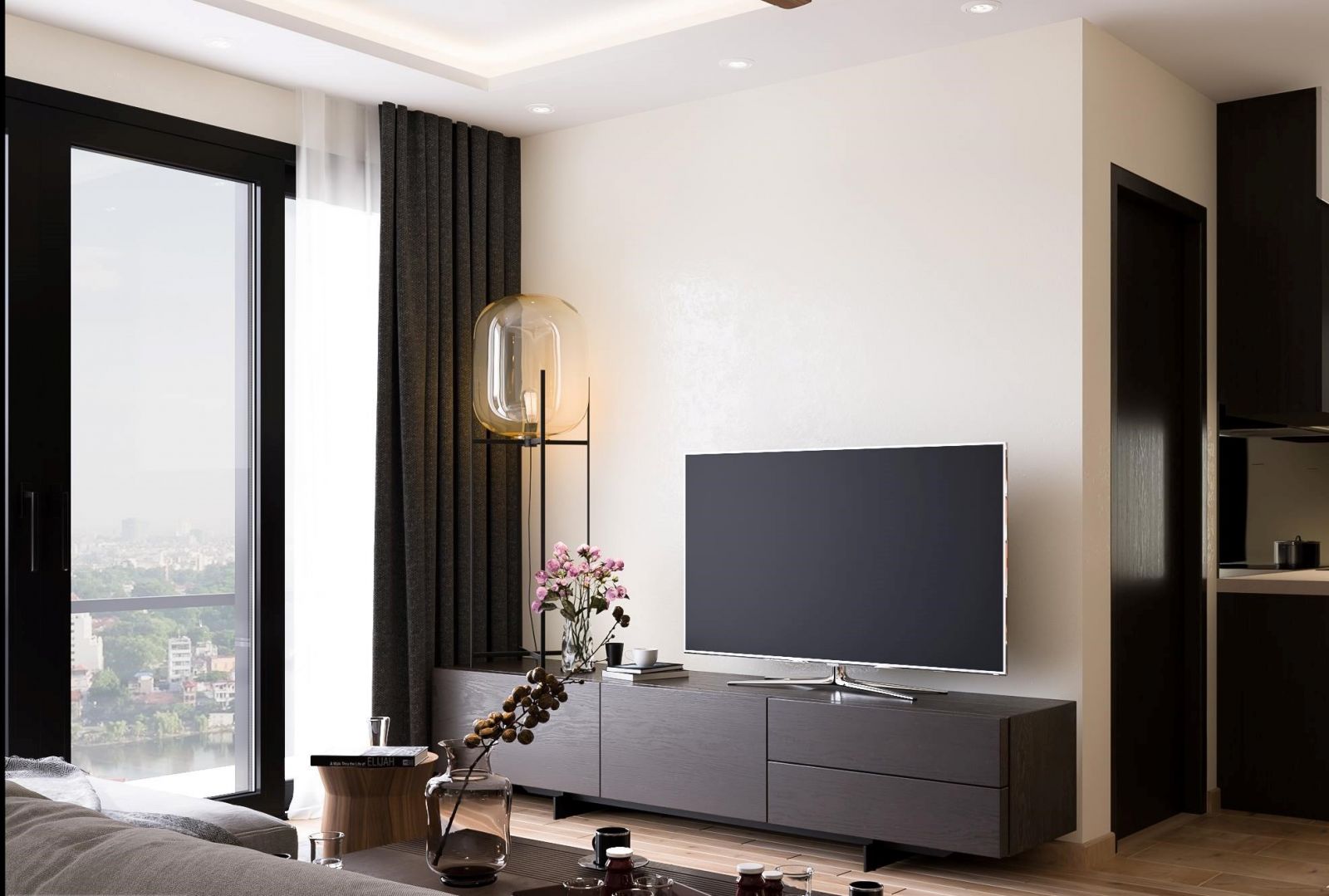 Không khó để bắt gặp những mẫu tivi âm tường ở các căn hộ chung cư. Bởi cách bố trí này không chỉ tạo nên một tổng thể hài hòa mà còn khiến căn hộ thêm rộng rãi, thoáng mát.