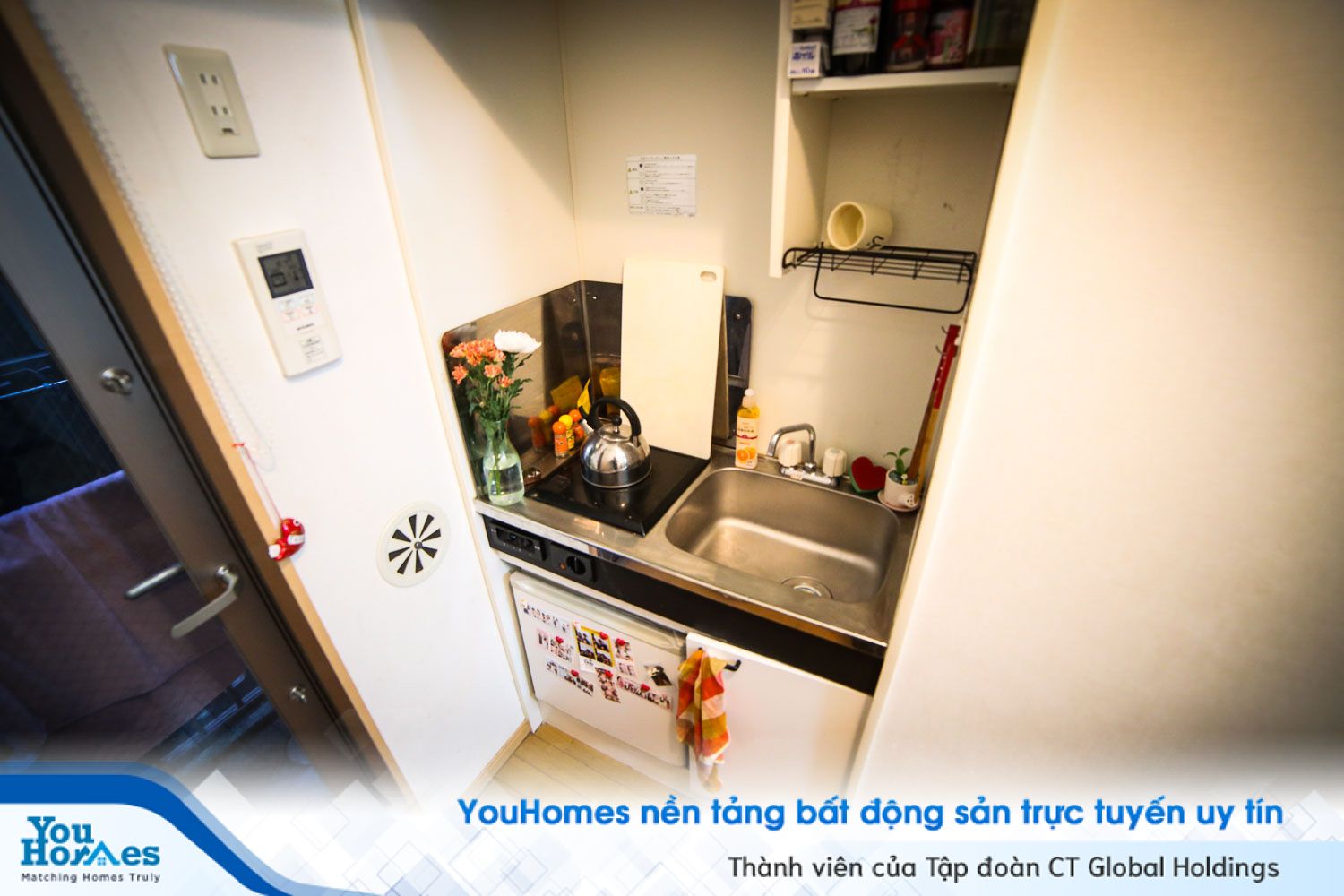 Nhà bếp cũng cực kỳ nhỏ nhắn và mọi thứ đều được lựa chọn kích thước "mini" giúp tiết kiệm không gian tối đa.