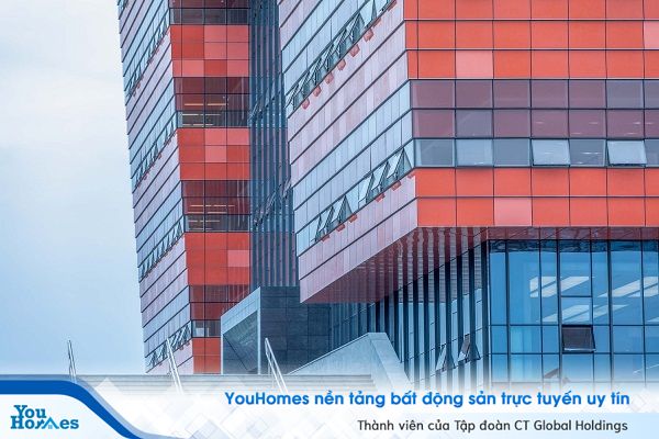 Toàn bộ công trình được làm từ bê tông, cốt thép, mặt ngoài phủ các tấm ốp thép carbon chuyên dụng, bền vững với thời tiết, mang các gam màu khác nhau.