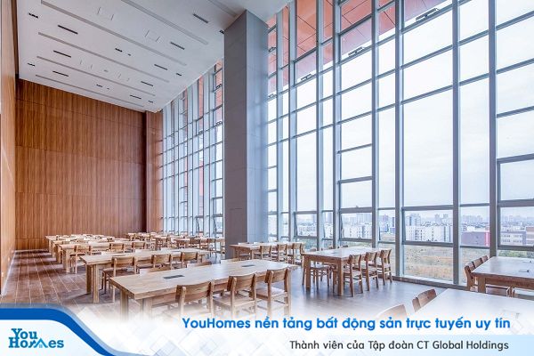 Không gian đọc sách cho sinh viên mang lối thiết kế đơn giản, nhưng cũng không kém phần sang trọng, bố cục sắp xếp khoa học.