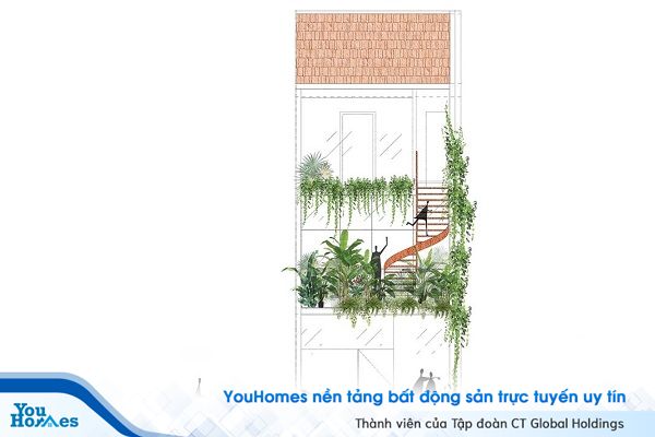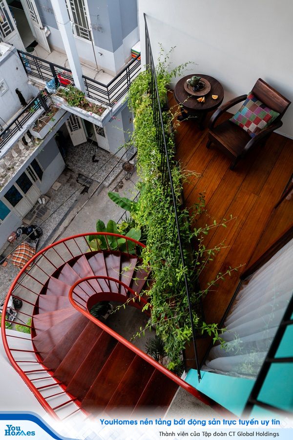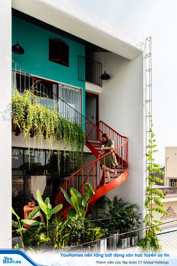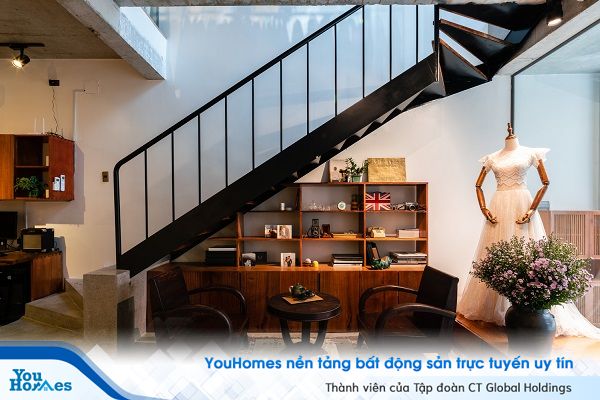 Điểm nổi bật trong sự phân chia không gian kinh doanh và không gian chức năng ở chính là cầu thang sắt lộ thiên, là sự chuyển tiếp giữa nơi làm việc và nghỉ ngơi nhưng vẫn đảm bảo sự riêng tư.