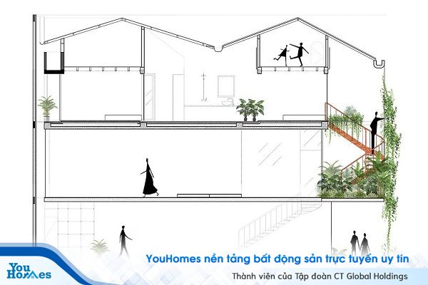 Giải pháp này là sự phá cách hoàn toàn mới so với những ngôi nhà phố thông thường, mang đến một kiến trúc tổng thể liền mạch như liên kết giữa các thành viên trong gia đình nhiều thế hệ, giữa cảnh quan trong quá khứ và hiện tại sống động hơn,