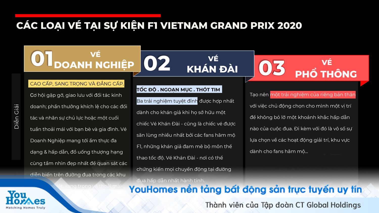 Bạn sẽ được hưởng những quyền lợi gì khi mua vé F1? Bạn nên chọn vé F1 doanh nghiệp, khán đài hay vé phổ thông? Hãy cùng YouHomes tìm hiểu trong bài viết sau đây.