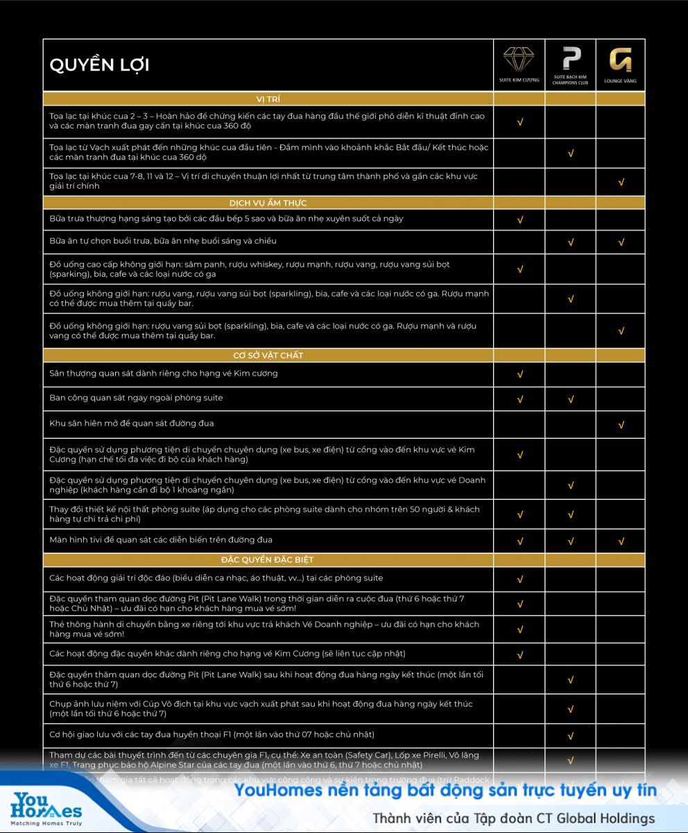 GIÁ VÉ F1 SUITE KIM CƯƠNG 03 NGÀY: 96.500.000 VND - ĐẶT MUA NGAY