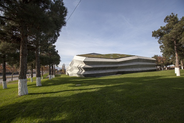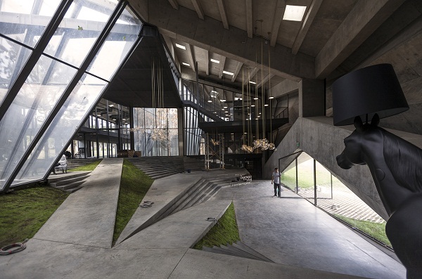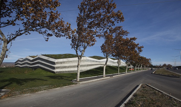 Nhà máy chế biến cà phê hình thù “thảm thực vật” có thiết kế hình dẹt chữ L, phủ phần mái thực vật xanh rờn bắt mắt do kiến trúc sư Khmaladze trực tiếp thiết kế.