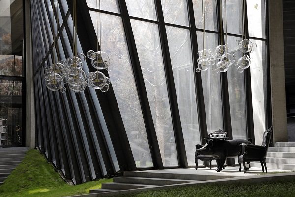 Hệ thống đèn thủy tinh hình cầu thả trần cũng là điểm nhấn khác biệt trong công trình này.