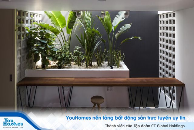 Một góc thư giãn lý tưởng cho bạn trong căn nhà. Cây xanh luôn khiến chúng ta cảm thấy tươi mới và tràn đầy sức sống. Một chiếc bàn dài để ngồi thư giãn và thưởng thức những loại đồ uống mình yêu thích hoặc có thể là một không gian lý tưởng để bạn có thể sáng tạo trong công việc.