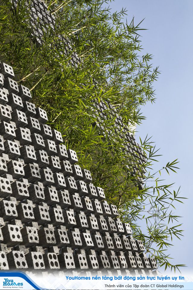 Điểm đặc biệt và thu hút mọi ánh nhìn khi đến với ngôi nhà là ở những viên gạch được lát rất đặc biệt, tạo điểm nhấn riêng cho bức tường.