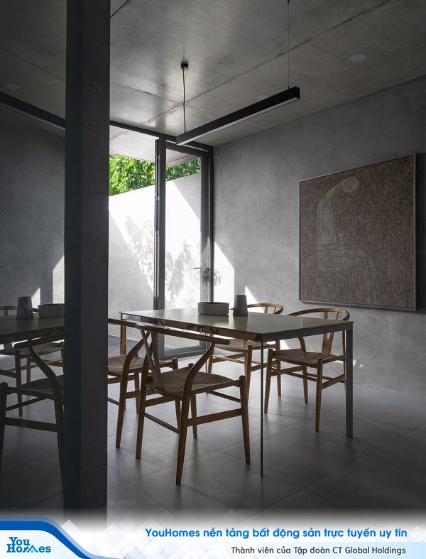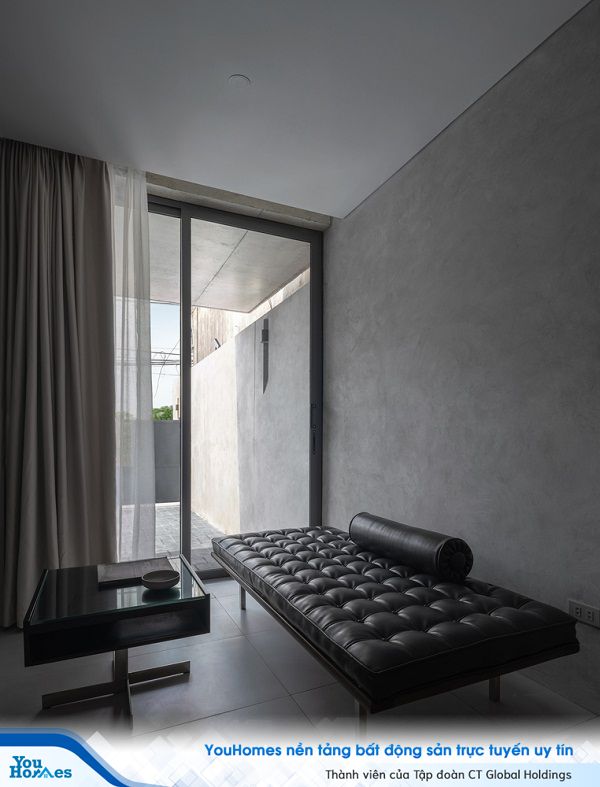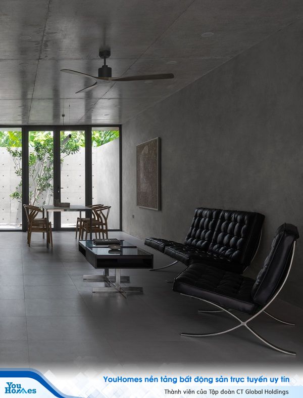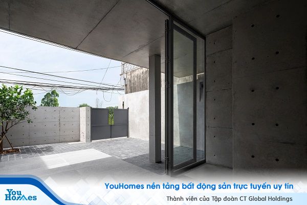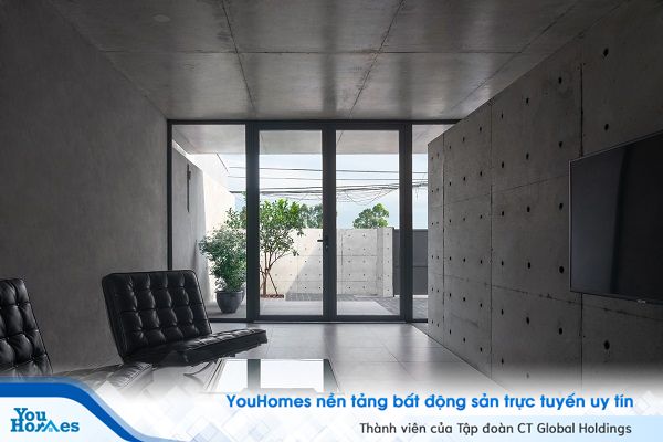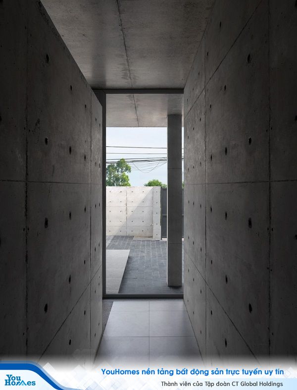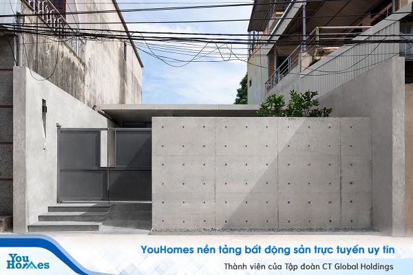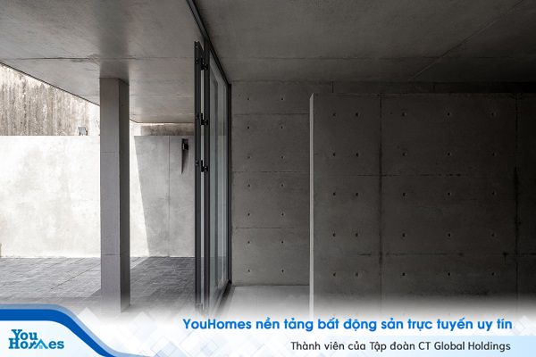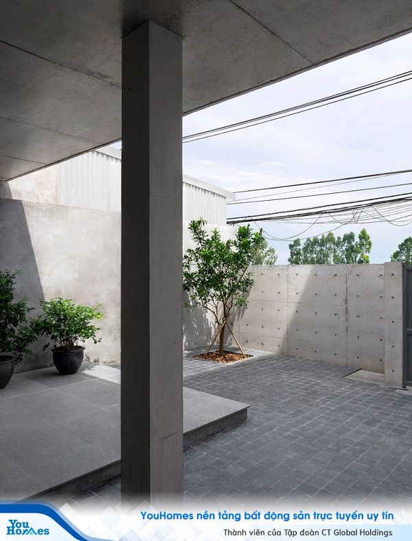 Ngoài ra bức tường bê tông cao khoảng 2.2m được sử dụng làm giải pháp ngăn cách không gian sinh hoạt chung và không gian riêng tư của các thành viên trong gia đình.