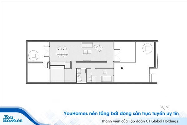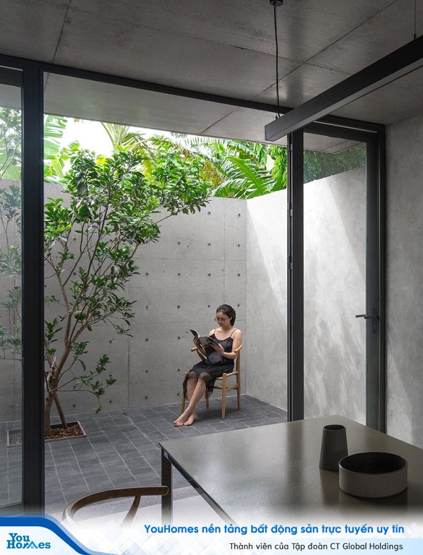 Vì ngôi nhà nằm ở khu vực có khí hậu nhiệt đới gió mùa ẩm ướt nên kiến trúc sư sẽ hướng đến yếu tố thoáng mát và gió tự nhiên. Giải pháp là bố trí hai khoảng sân cho ngôi nhà, sân trước và sân sau để giúp không khí lưu thông dễ dàng qua không gian sống.