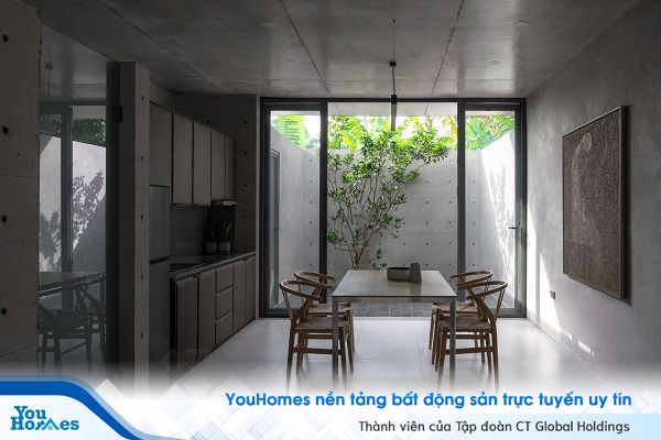 Bên cạnh phòng ăn, kiến trúc sư còn trồng thêm cây bưởi, đây cũng chính là thành viên mới của gia đình nhỏ. Khi mùa xuân đến hoa bưởi sẽ trổ bông và lan tỏa hương thơm xung quanh, theo năm tháng cây bưởi sẽ gắn kết, chia sẻ những niềm vui, buồn cùng các thành viên trong gia đình.
