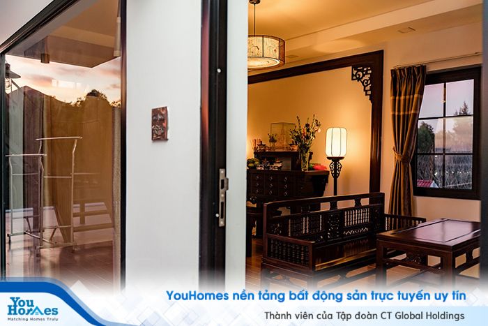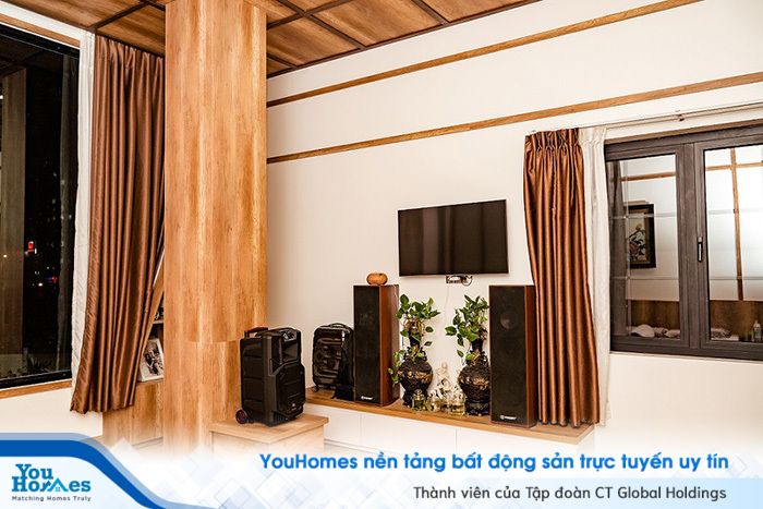 Khu phòng thờ được nam diên viên đầu tư khá nhiều với nội thất được hoàn toàn làm bằng gỗ với tông màu nâu trầm trang nghiêm.