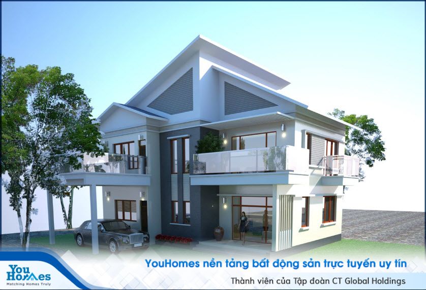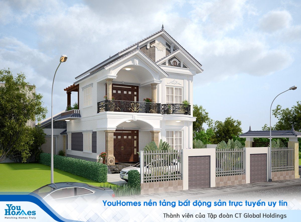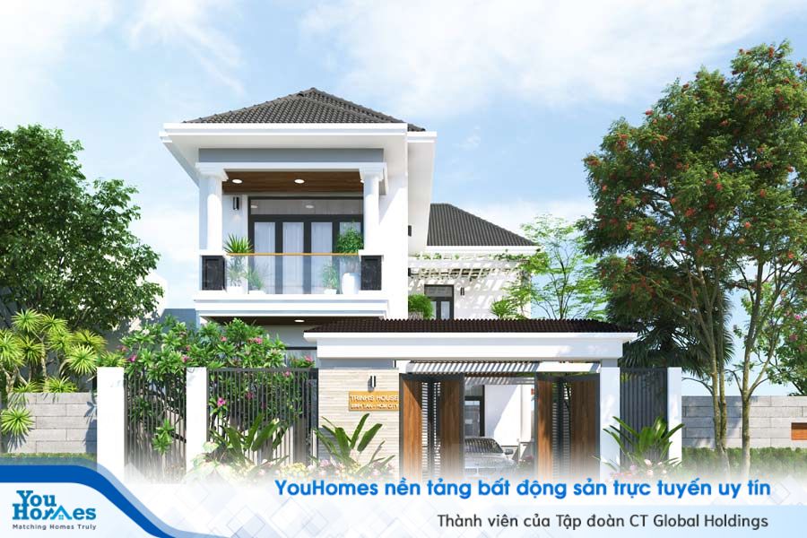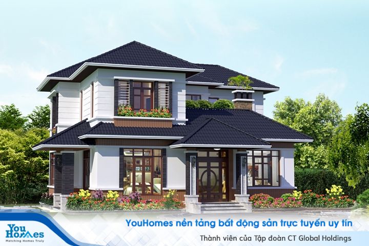 Biệt thự 2 tầng mái thái đẹp hiện đại tạo nên không gian tuyệt vời cho cả gia đình cũng phần hoa xung nằm tại bậu cửa giúp biệt thự có thêm sức sống và màu sắc tươi mới. Màu trắng tinh tế kết hợp cũng mái nhà màu đen tuyền cực kỳ nổi bật giúp biệt thự trở nên đặc biệt và sang trọng những không kém phần gần gũi và ấm cúng.