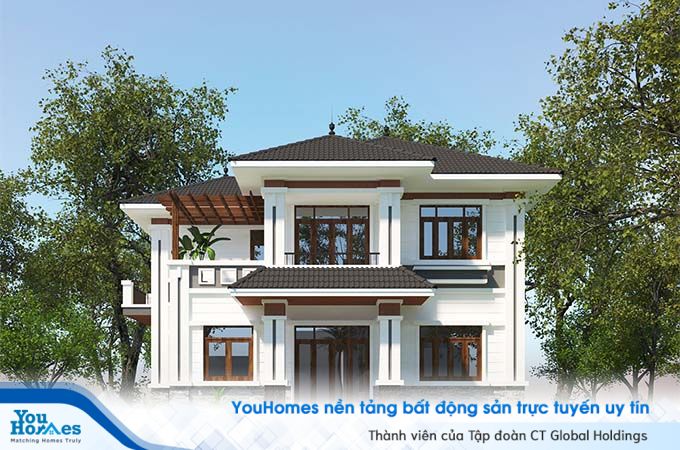 Biệt thự 2 tầng mái thái - Mẫu nhà với 2 gam màu trắng, nâu chủ đạo tạo nên sự ấm áp và có thể trở thành tổ ấm lý tưởng cho gia đình. Ngoài ra với thiết kế này, người sử dụng cũng luôn có cảm giác an toàn và kín đáo, rất phù hợp với các căn biệt thự nằm tại các con phố đông đúc.