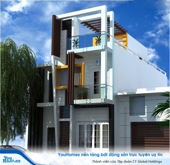 Tông màu trắng làm chủ đạo tiếp tục được sử dụng trong mẫu thiết kế này. Mặt tiền của nhà được thiết kế độc đáo, mới lạ mang nét hiện đại và dấu ấn phong cách của chủ sở hữu. Màu nâu, vàng khéo léo được sử dụng tạo điểm nhấn trên nền trắng khiến ngôi nhà trở nên đặc biệt, thu hút mọi ánh nhìn.