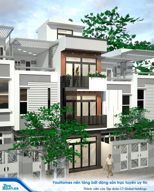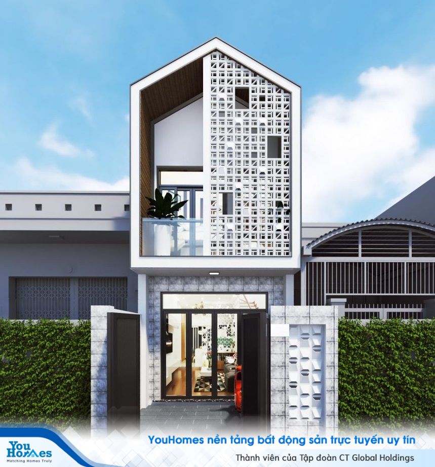 Mẫu nhà này được xây theo không gian mở, thoáng mát, có sân trước rộng rãi để xe ô tô. Chắc chăn đây sẽ là kiểu kiến trúc mới được ưa chuộng nhất trong năm 2020 này. Màu sắc trang nhã, hài hòa, hợp lý, lan can mát mẻ – nơi chúng ta có thể cảm nhận không khí trong lành nhất. Mặt tiền nhà ống sử dụng gạch bông gió tạo kiến trúc lạ mắt cùng công năng chắn nắng.