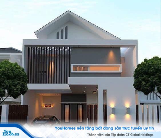 Bố cục tổng thể mang diện mạo và hình thái nhà phố đẹp năng động với các đường nét đơn giản. Sự kết hợp hoàn hảo giữa xám và trắng tạo nên vẻ sang trọng cho ngôi nhà. Hệ thống đèn được lắp đặt hiện đại tạo vẻ đẹp linh lung cho căn nhà về đêm.