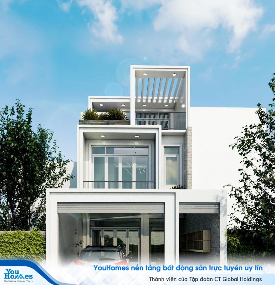 Mặt tiền nhà 1 tầng trệt 1 lầu có sân thượng hiện đại. Đặc biệt là không gian garage phía trước tiện lợi. Sắc trắng là tông màu chủ đạo toát lên vẻ tinh tế, sang trọng. Các tầng được thiết kế theo các hình khối tạo nên một tổng thể bắt mắt.