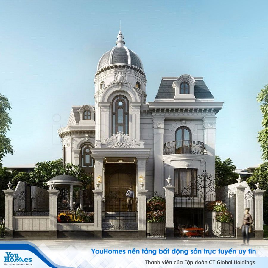 Biệt thự với tông màu sang trọng trắng, nâu và xám được kết hợp cực kỳ phù hợp với phần mái tròn đặc trưng của các căn biệt thự Pháp làm nên sự cổ kính từ từng chi tiết thiết kế. Ngoài ra, để đáp ứng nhu cầu cảu đời sống hiện đại rất nhieuf căn biệt thự được thiết kế thêm gara gầm.