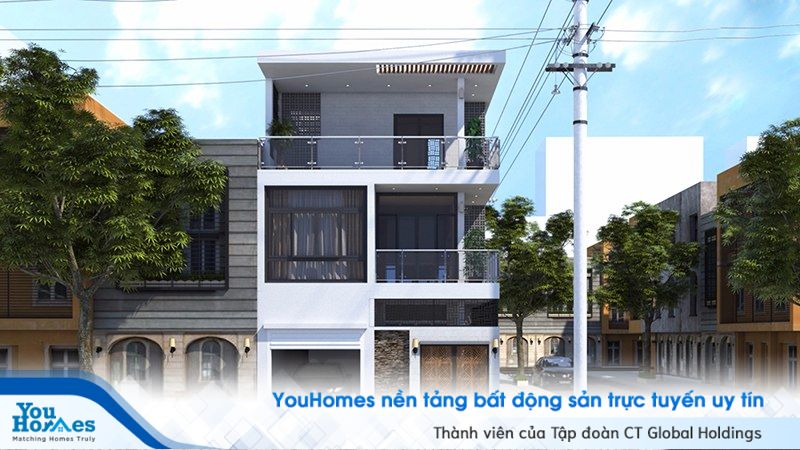 Phối cảnh tổng thể mẫu nhà 2 tầng mặt tiền 4m