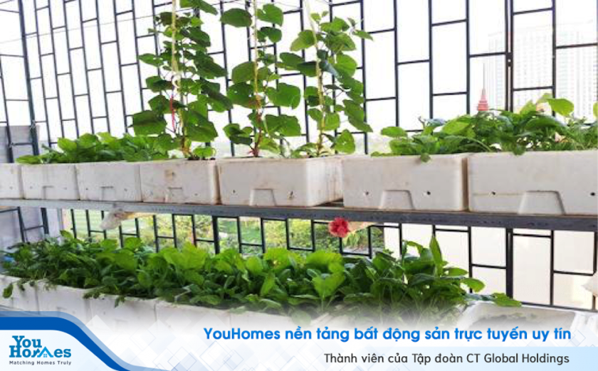 Trồng cây bằng thùng xốp trên sân thượng - Nguồn ảnh: Internet
