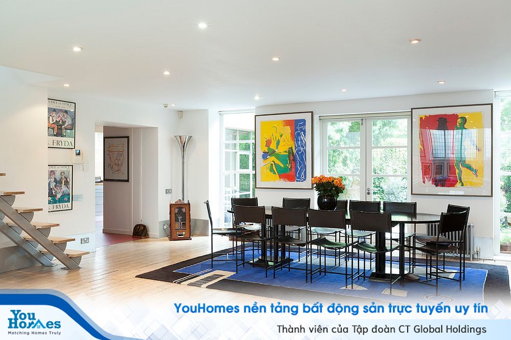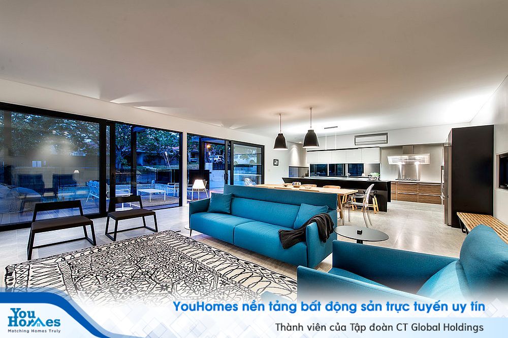 Trong không gian màu trắng chủ đạo, bạn có thể thêm màu đen vào cài đặt hiện có để tạo cho căn phòng sự rung cảm và hiện đại hơn. Trong khu vực sinh hoạt mở, màu trắng, sự kết hợp màu đen và màu xanh có thể được sử dụng để phân định khu vực ăn uống hoặc phòng khách.
